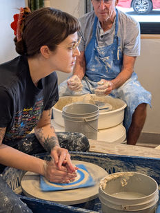 POTTER'S WHEEL - In class, our instructor teaches the steps for throwing on the wheel - throwing, centering, drilling down, and pulling up the walls. Once you've tried a one-time pottery class, consider taking a six-week course where you learn to wedge, trim and glaze your own work.